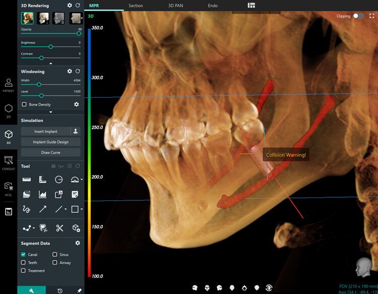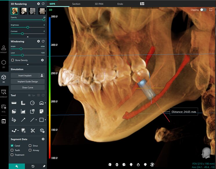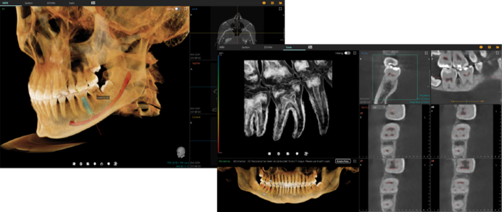 - インプラント埋入、神経描画、サイナスなどの治療計画を、直感的なツールで簡単にシミュレート可能。